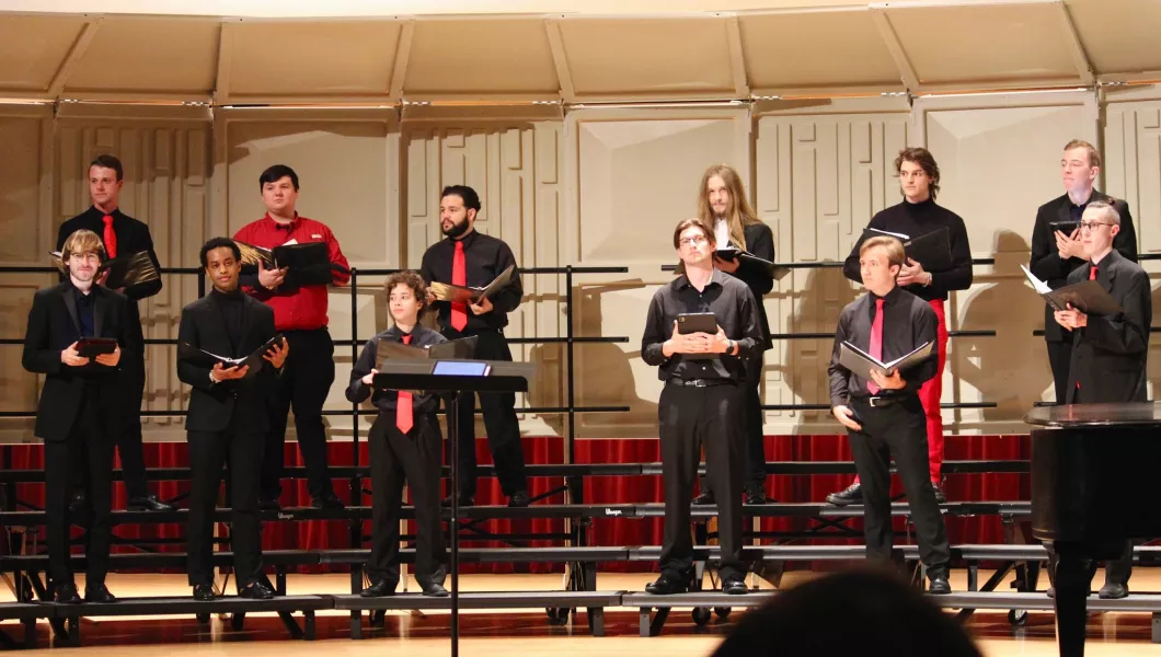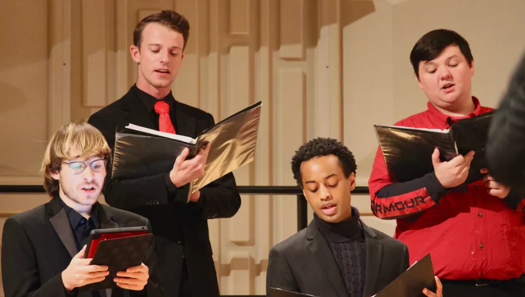 The Singing Cardsmen is a non-auditioned ensemble open to students of all majors and identities who sing tenor or bass. The Cardsmen, directed by Austin Echols, is also a Recognized Student Organization and is open to faculty, staff, and friends of the university. The Cardsmen perform a wide variety of music, from the Renaissance through contemporary compositions, Broadway to Barbershop, and standards of the tenor-bass repertoire. The ensemble provides a wonderful opportunity to meet fellow students from across the university. For more information, please contact Austin Echols by email.