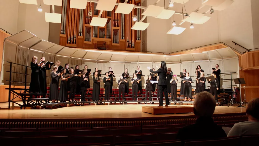 The Women’s Chorus is a non-auditioned treble ensemble open to students of all majors and identities who sing soprano or alto. Directed by Dr. Won Joo Ahn, the choir explores a wide range of choral music, from Renaissance works to contemporary compositions, fostering a vibrant and inclusive musical community. For more information, please contact Dr. Ahn by email.