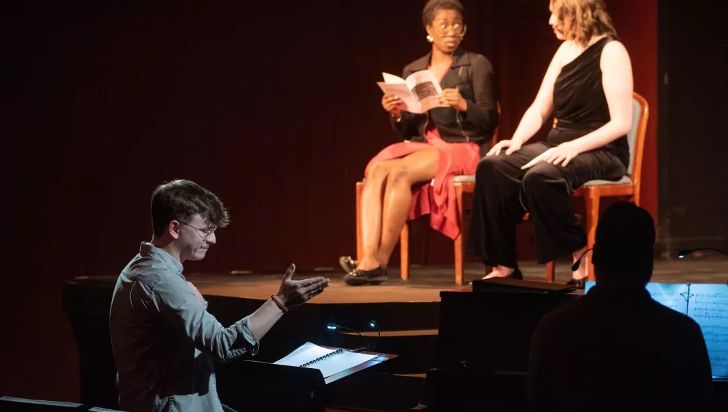 Opera Theatre performs a fully-staged opera with orchestral accompaniment during the spring semester. This ensemble is conducted by Professor Kimcherie Lloyd, with stage direction by Professor Michael Ramach. Cast members are selected by audition and voice faculty recommendation.